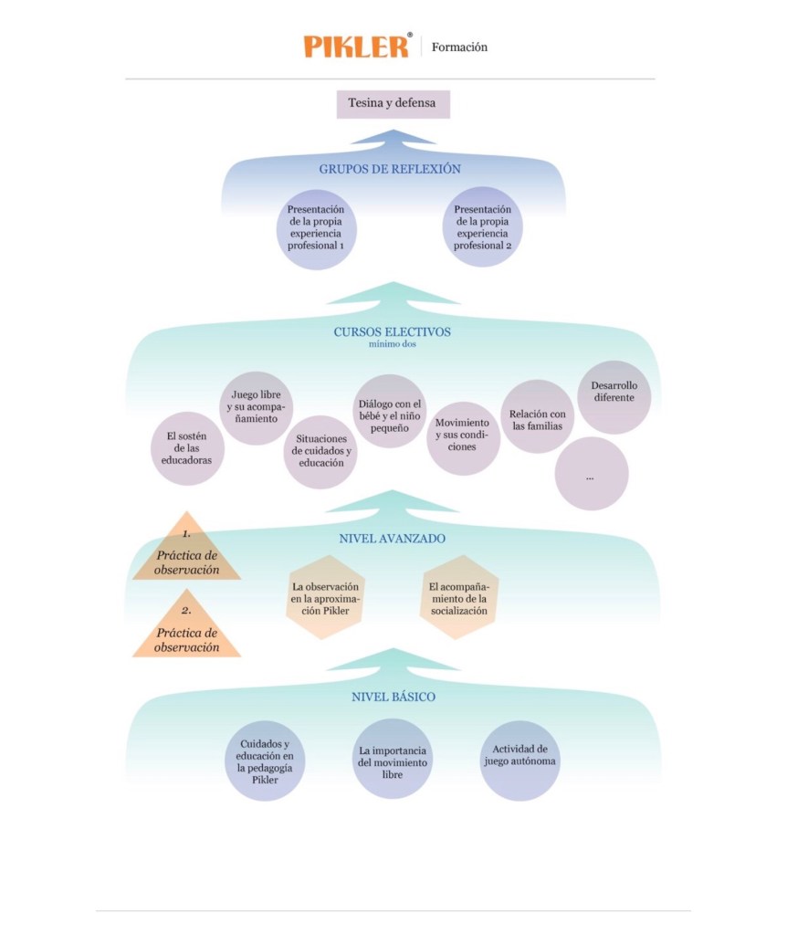 A continuación, podéis observar todos los cursos que componen la certificación como profesional Pikler: